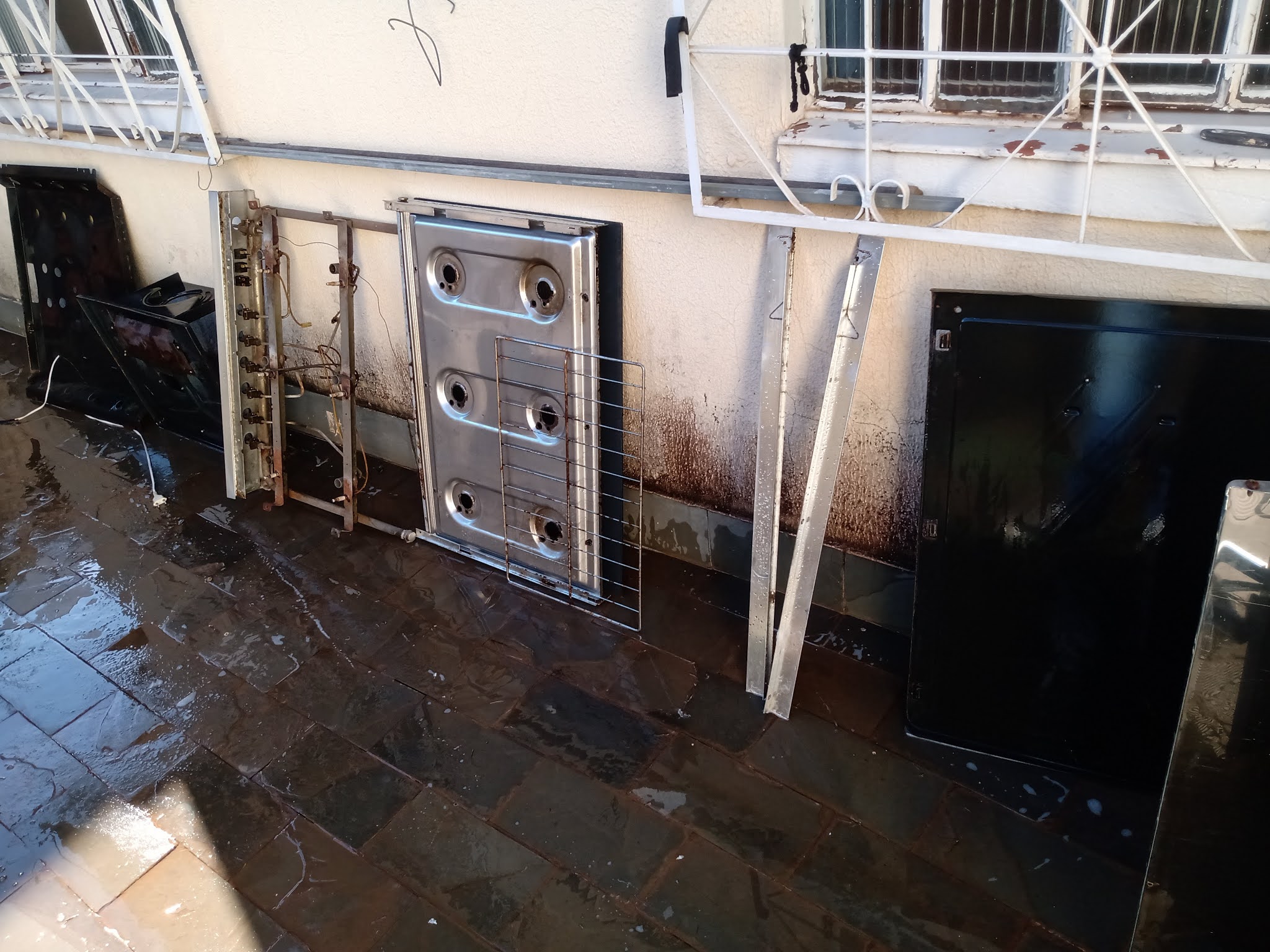 Tive que desmontar todo o fogão para tirar toda a lã de vidro para depois fazer a lavagem e higienização do fogão Continental antigo mas que o cliente tinha nele e ainda tem, um valor emocional muito forte por ser de sua saudosa mão que muito fez neste fogão para toda família.